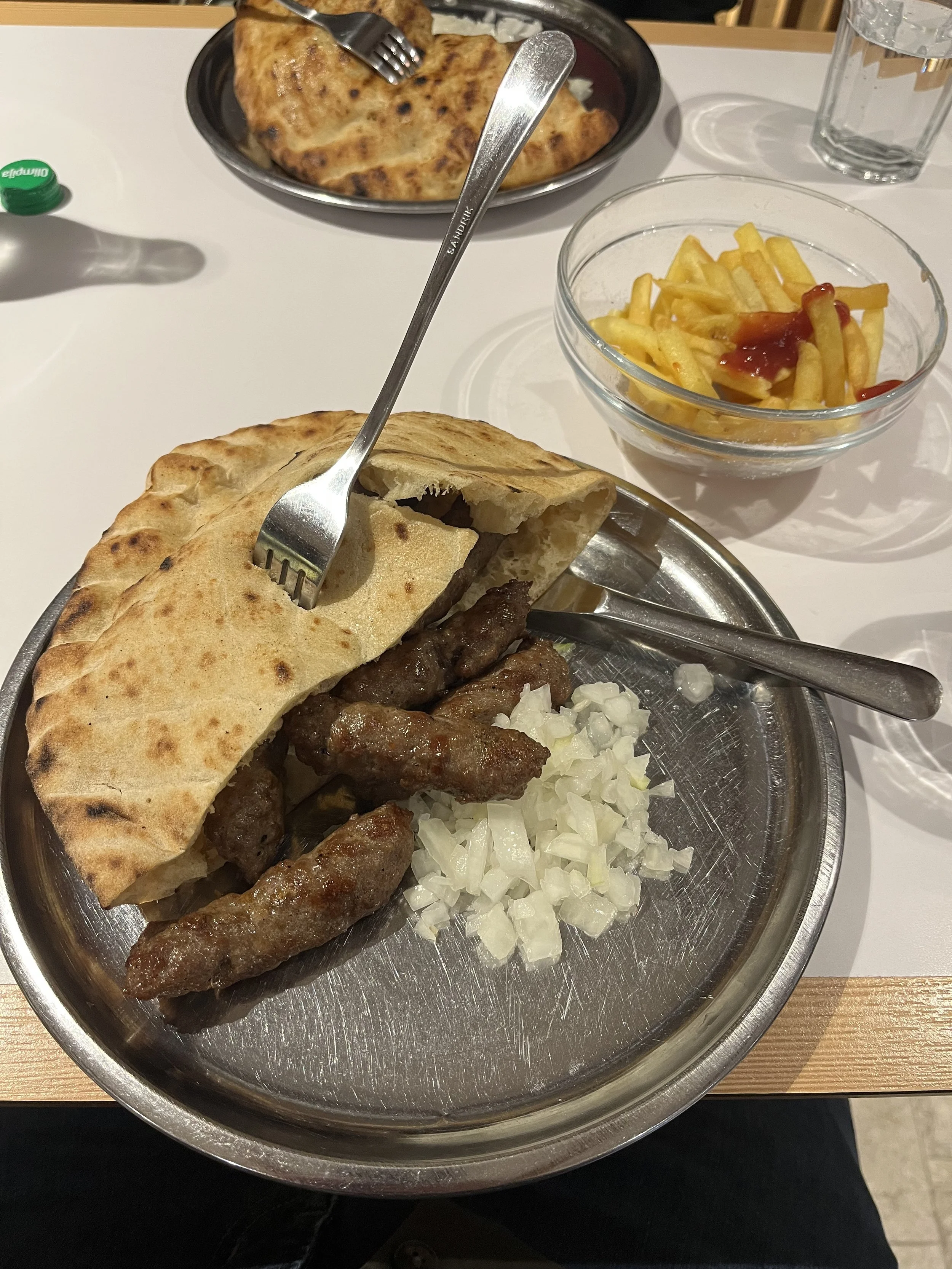 We ended the tour at the city’s hillside cemeteries—Muslim and Jewish—before taking in sweeping views of Sarajevo, a city that has suffered immensely yet continues to rise with resilience and beauty. Mom & I took in the breathtaking views before heading back to Old Town to have lunch at a Bosnian restaurant to eat some cevapi, a traditional Bosnian kebab dish.